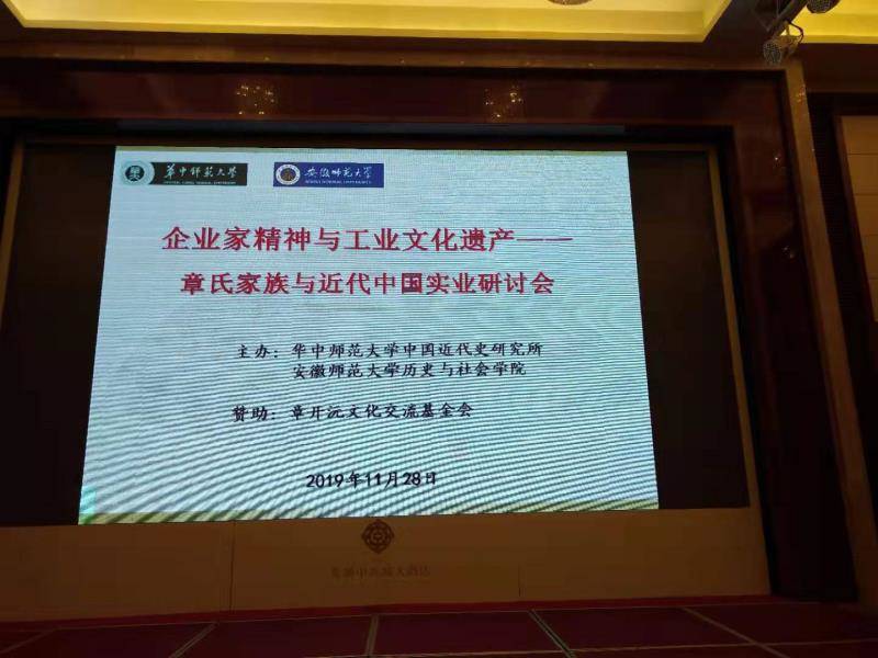 11月28日,来自全国的专家学者及章维藩的后裔聚集芜湖,参加“企业家精神与工业文化遗产:章氏家族与近代中国实业”研讨会,本次会议由华中师范大学中国近代史研究所、安徽师范大学历史与社会学院主办。