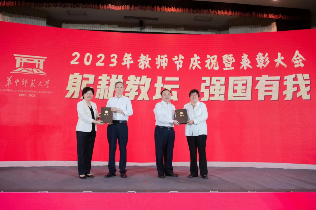 2023年9月13日,在华中师范大学2023年教师节庆祝暨表彰大会上,中国近代史研究所教授朱英获聘人文社会科学资深教授,校党委书记夏立新、校长郝芳华为朱英教授颁发了聘书。