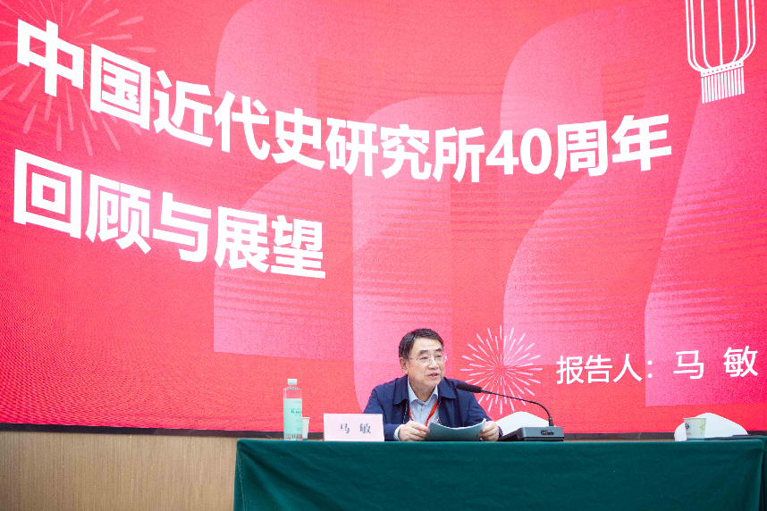 马敏最后指出,四十年来,研究所综合实力不断增加,社会影响力日益提升,但也要正视短板和问题,在日趋激烈的竞争中迎难而上,不断取得新的进步。首先,要讲传承。传承好章先生等老一辈学者的学术思想以及优良的学风、所风。其次,要谋创新。优化整合校内外资源,构建跨学科的创新型高水平学术团队;创新人才选拔和培养机制,完善高水平人才培养体系;深耕优势特色研究领域,拓展新的学术生长点,推出一批原创性高质量学术成果;营造良好的学术氛围,形成严谨求实、积极向上的学术风气;继续加强国际交流,将研究所建成国内领先、且能在世界上产生重要影响的学术机构。