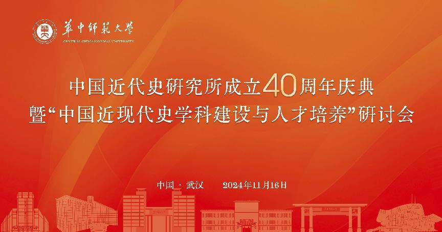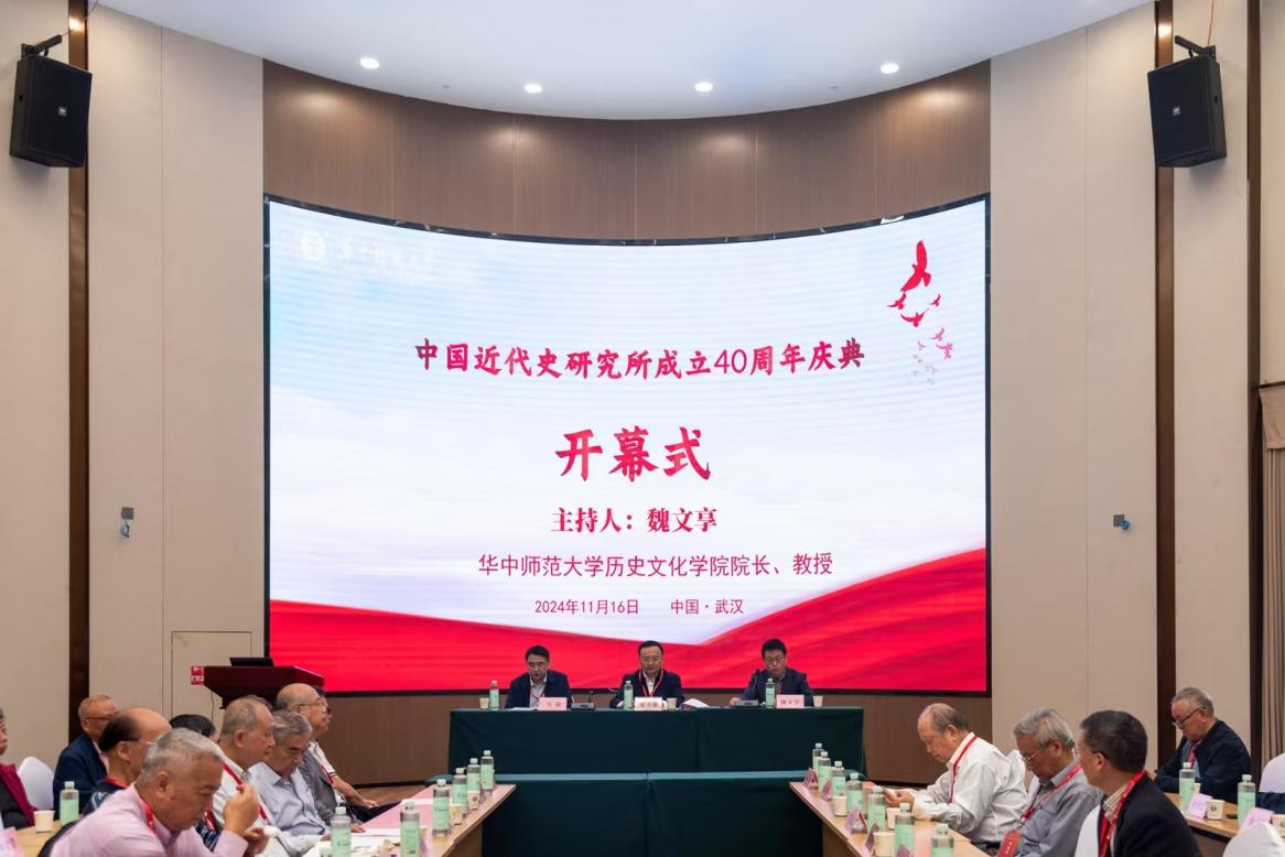 2024年11月16日,中国近代史研究所成立40周年庆典暨“中国近现代史学科建设与人才培养”研讨会在华中师范大学桂苑宾馆举行。本次会议汇聚了来自海内外的专家学者、历届所友、在校师生以及社会各界友好人士,共同回顾和展望中国近代史研究所的辉煌历程与未来愿景。华中师范大学党委书记夏立新出席开幕式并讲话,中国近代史研究所所长马敏作主题汇报,开幕式由历史文化学院院长魏文享主持。